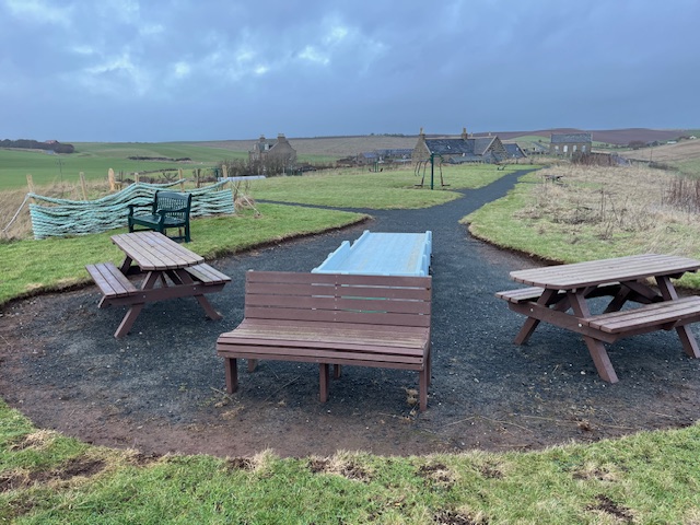 The area overlooks the village and harbour beach, but it has the advantage of being completely separate, thus avoiding the large groups of people using the harbour area. This makes it an ideal open space for people who, for various reasons, may have difficulty accessing busy outdoor areas.
