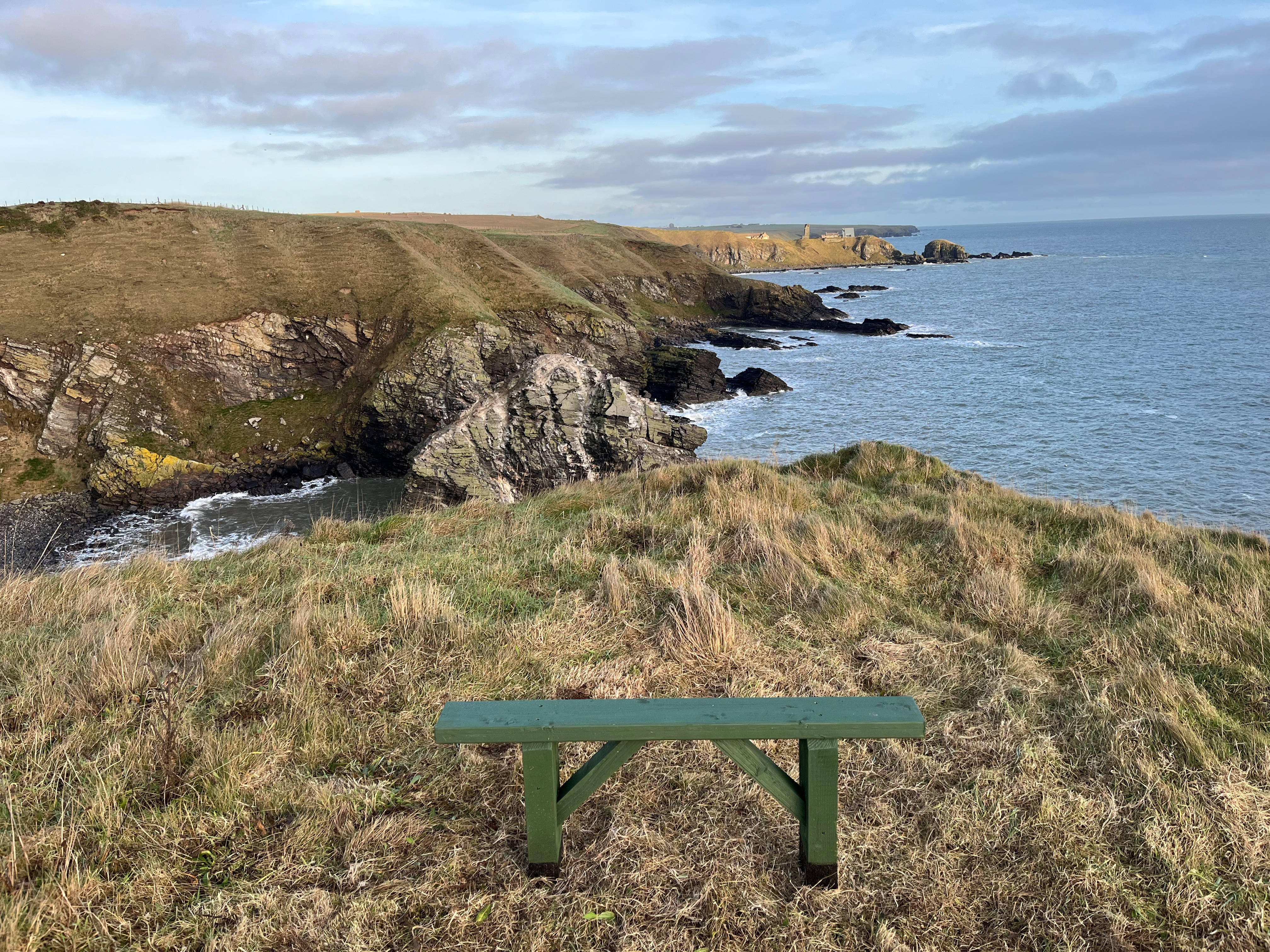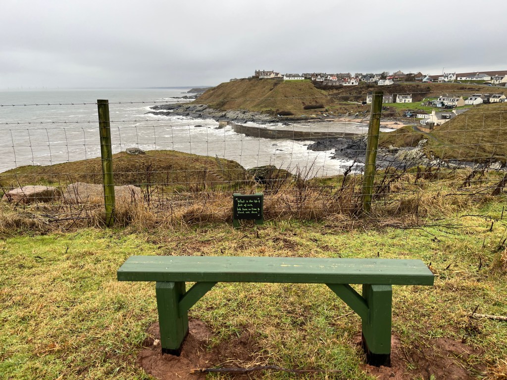 Old Slains Castle to WhinnyfoldCransdale Car Park to Old Slains Castle and back – Circular RouteNewly installed Bench above Cransdale Car ParkBench between Cransdale and Old CastleBench Between Cransdale and Old CastleThe Empty Chair, The Rive, Collieston